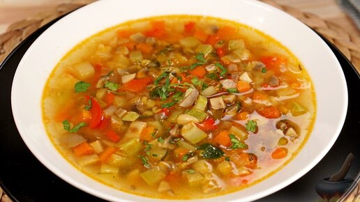 Много овощей - много вкусов. Овощной суп с грибами и чечевицей