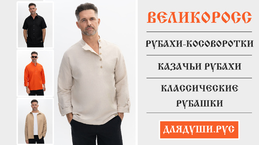 Косоворотки, казачьи и классические рубахи Великоросс из натурального льна и хлопка