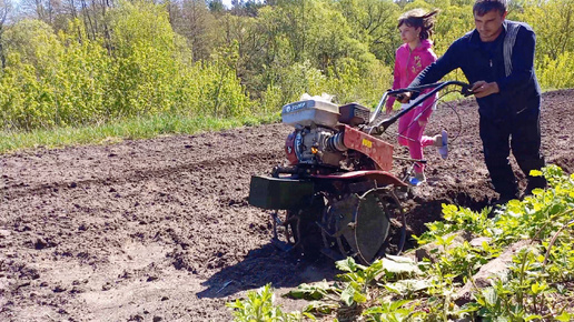 Посадка картофеля, Нарезаю борозды мотоблоком!!!