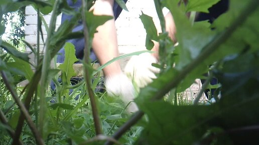 Ручная прополка огорода - вид с грядки