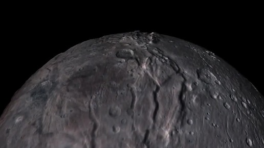 Компьютерный "пролет" над поверхностью Харона, спутника Плутона. 2015 год.