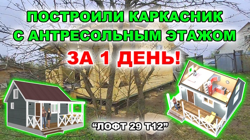 Недорогой, каркасный, дачный домик с антресольным этажом по проекту “Лофт 29 т12”. Строим за 1 день!