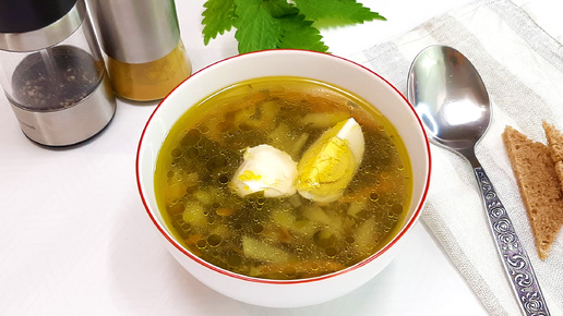 Суп с крапивой и яйцом на курином бульоне. С добавлением щавеля. Вкусный летний суп!