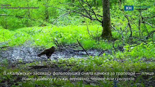 Обедающий канюк попал в фотоловушку калужского заповедника