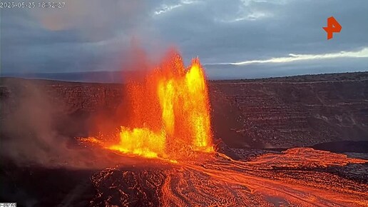 На Гавайях вулкан Килауэа выбросил фонтан лавы на высоту более чем 300 метров