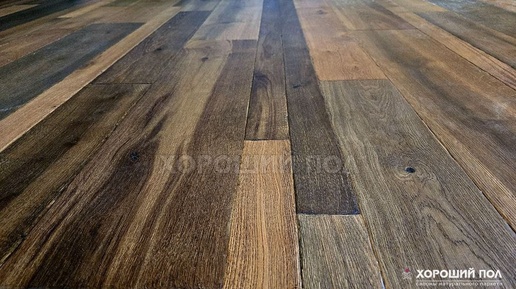 Состаренный разноцветный паркет разной ширины в салонах натурального паркета ХОРОШИЙ ПОЛ.