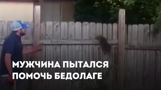 Енот застрял в заборе и не мог выбраться
