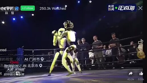 В Китае прошёл первый бой управляемых роботов — как в фантастическом фильме «Живая сталь»