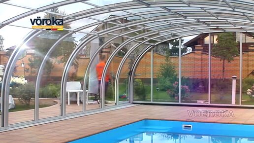 Павильоны для бассейнов. Серия Prestige. Большой раздвижной павильон для бассейна. Прозрачный поликарбонат.