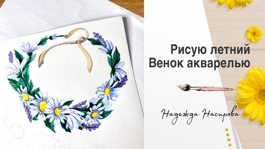 Летний венок из ромашек акварелью