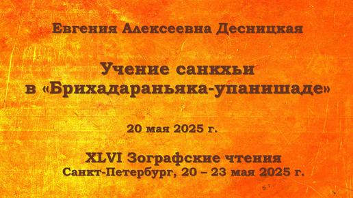 Конференции. XLVI Зографские чтения. Учение санкхьи в «Брихадараньяка-упанишаде». Е. А. Десницкая