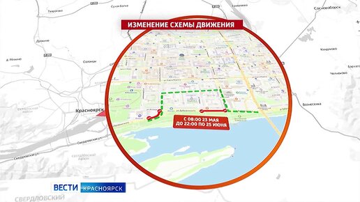 Почти до конца июня будет перекрыто движение в центре Красноярска