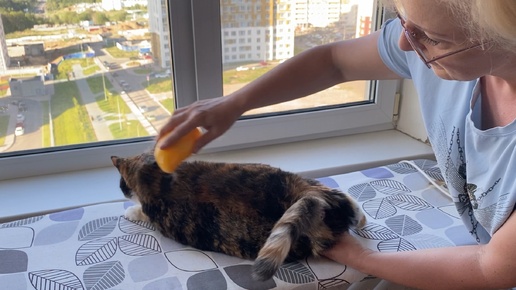 У кошИчки Фросиньки новый приспособ - чесалка с распылителем!