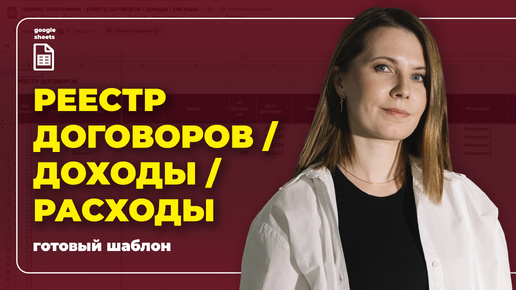 20. ШАБЛОН - реестр договоров, доходы и расходы в Google таблице