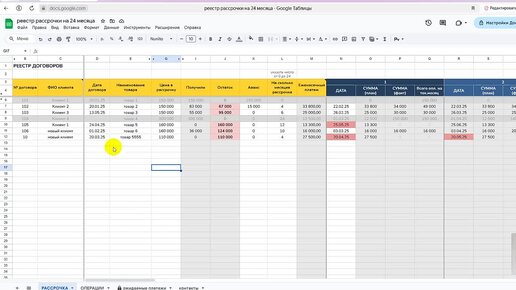 21. Учет рассрочки по договорам на 24 месяца в Google (гугл) таблице