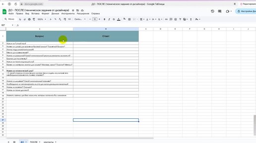 22. Красивый у добный опросник от дизайнера в Google (гугл) таблице