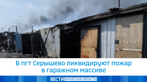 В пгт Серышево ликвидируют пожар в гаражном массиве