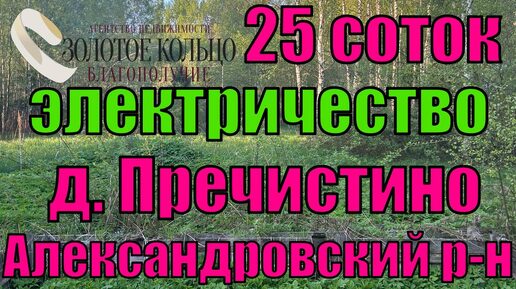 Продаётся земельный участок 25 соток в деревне Пречистино,около деревни Редриковы горы