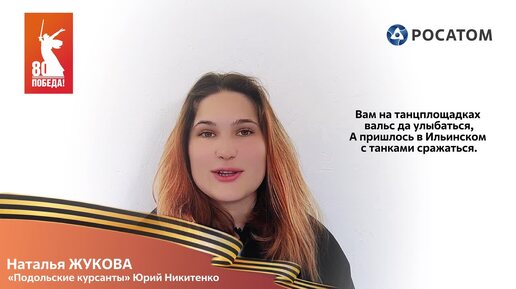 «Сердце с сердцем говорит». Стихотворение Юрия Никитенко «Подольские курсанты» читает Наталья Жукова