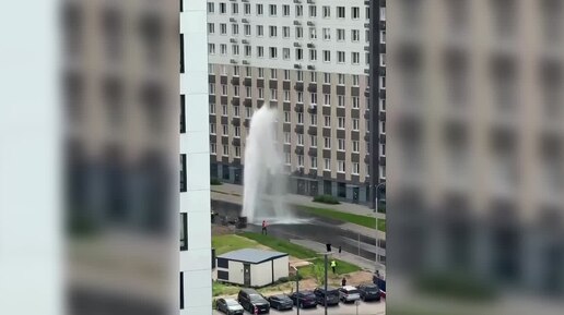 Фонтан высотой в 5 этажей забил после прорыва трубы с холодной водой на северо-востоке Москвы