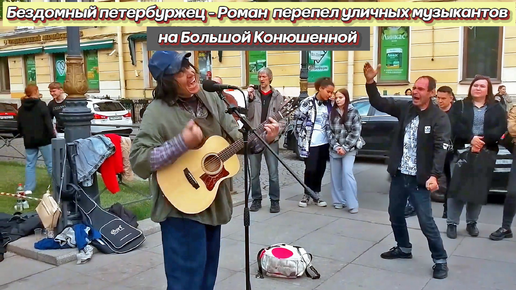 🎸Бездомный петербуржец - Роман перепел уличных музыкантов на Большой Конюшенной. В Питере даже бездомный - талант