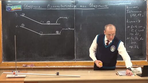 Опыт демонстрирующий скатывание шара с наклонной поверхности при различных условиях торможения.