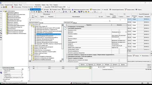 Окно печати в Комплексе А0: управление формами и экспорт смет в Excel
