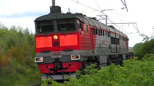"Подмигнули". 2ТЭ116К-1355 с грузовым поездом и приветливой бригадой