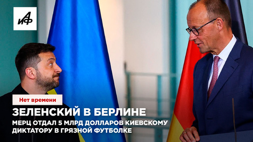 Зеленский в Берлине. Мерц отдал 5 млрд долларов киевскому диктатору в грязной футболке