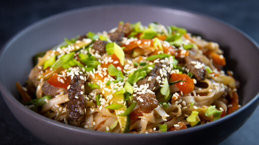 Wok в домашних условиях за 20 минут! Лапша удон с говядиной и овощами. Быстро, просто и очень вкусно.