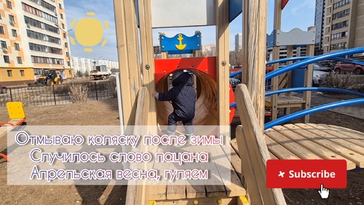 Отмываю коляску после зимы🛁Случилось слово пацана🤕Апрельская весна, гуляем☀️