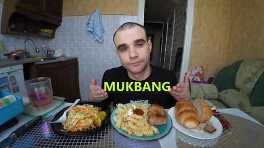 МУКБАНГ МЯСО СВИНИНА ЖАРЕНАЯ / МАКАРОНЫ / СОУС / САЛАТ / КРУАССАН / КОНФЕТЫ / EATING MUKBANG ASMR АСМР