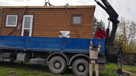 Привезли Баню на манипуляторе. Застрял и чуть выехал..