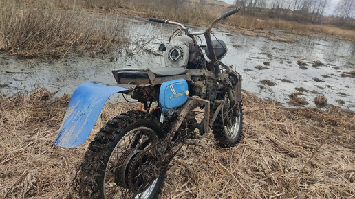 Полноприводный мотоцикл с двигателем от бензопилы урал - по весенним ручьям