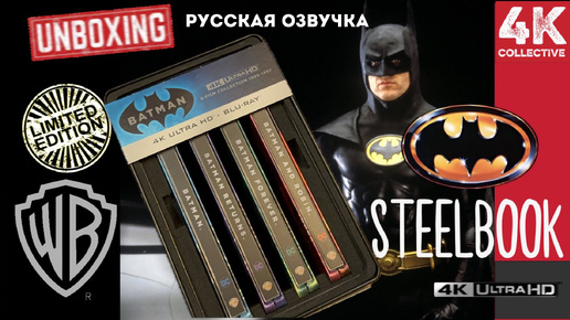 Коллекция из 4-х фильмов Batman (1989 - 1997) 4K UltraHD Blu-ray Steelbook в металлической коробке Распаковка