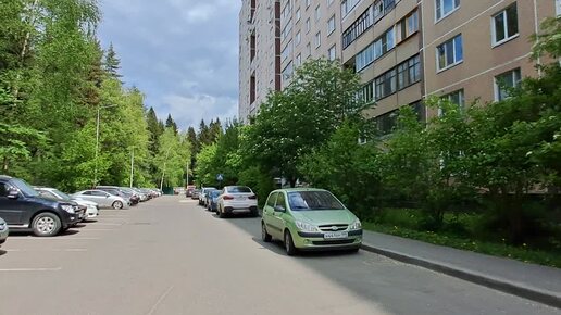 Пешим ходом. Из 10 в 11 микрорайон. Иду по улицам. Зеленоград. На улице +25 градусов.
