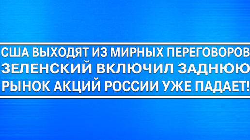 США ВЫХОДЯТ ИЗ МИРНЫХ ПЕРЕГОВОРОВ! ЗЕЛЕНСКИЙ ВКЛЮЧИЛ ЗАДНЮЮ! АКЦИИ РОССИИ УПАДУТ! ГЕРМАНИЯ УКРАИНА!