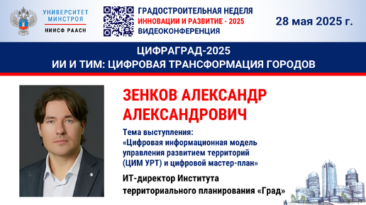 Видео. Зенков А.А. Цифровая информационная модель управления развитием территорий (ЦИМ УРТ) и цифровой мастер-план