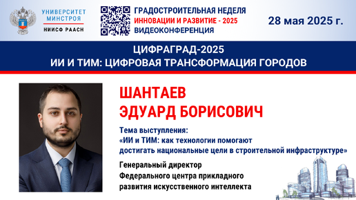 Видео. Шантаев Э.Б. ИИ и ТИМ: как технологии помогают достигать национальные цели в строительной инфраструктуре