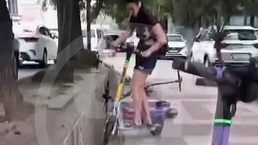 В Сочи женщина боролась с электросамокатами на улице