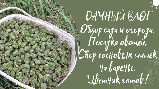 ДАЧНЫЙ ВЛОГ. ОБЗОР САДА И ОГОРОДА. ПОСАДКА ОВОЩЕЙ. СБОР ЗЕЛЕНЫХ СОСНОВЫХ ШИШЕК НА ВАРЕНЬЕ.