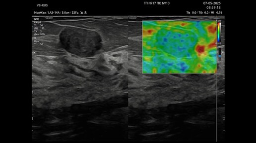 Ультразвуковая диагностика (УЗИ). Доктор Иогансен. Видеопримеры. Выпуск 123. Фиброаденома молочной железы (5).