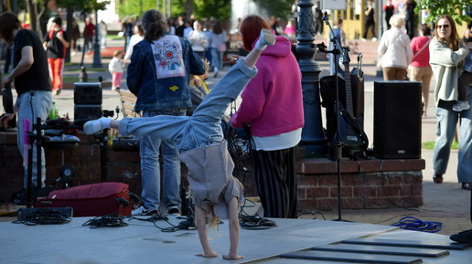 Девочка крутит колесо на музыкальной площадке. У каждого свои таланты...