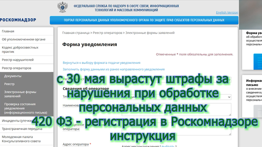 420 фз роскомнадзор персональные данные форма регистрации voenset.ru