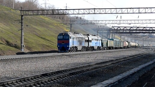 Тепловоз 2ТЭ116У-0076. Тяжёлый подъём с песочком.
