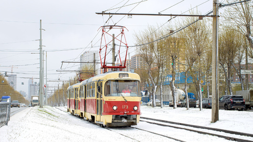 Поездка на трамвае Tatra T3SU,номер 173+174, маршрут 8
