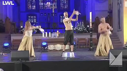 Недостижимые высоты еврокультуры. Высокохудожественное подбрасывание тушек курей в соборе. Германия.
