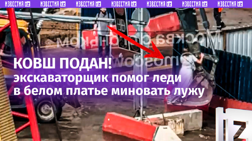 Экскаваторщик прокатил на ковше даму в белом, чтобы спасти наряд после ливня в Москве