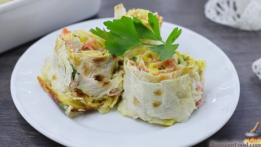 Простое решение, вкусный результат! Лаваш с колбасой, сыром и яйцами