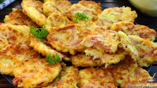 Драники с вкусными добавками. Кабачковые оладьи с колбасой